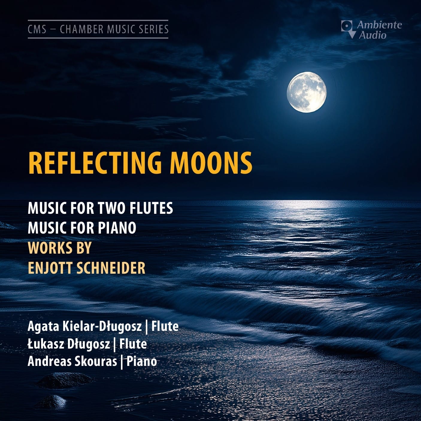 Unter dem Label Ambiente Audio hat Enjott Schneider eine neue CD mit Werken für zwei Flöten / Flötentrio / Piano solo veröffentlicht: Reflecting Moons (Ab sofort erhältlich)
